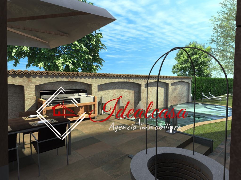 Piano Terra: ingresso, studio, ampia taverna, bagno/lavanderia, cantina, garage, dehor, ampio giardino di 300 mq.